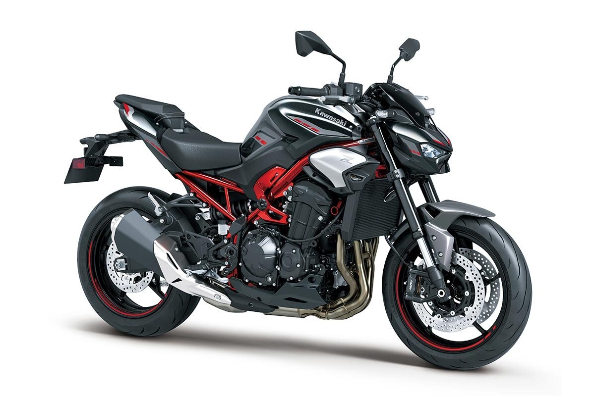 2025 Kawasaki Z900 Metallic Carbon Gray / Metallic Graphite Gray / Candy Persimmon RedPOWER MODES