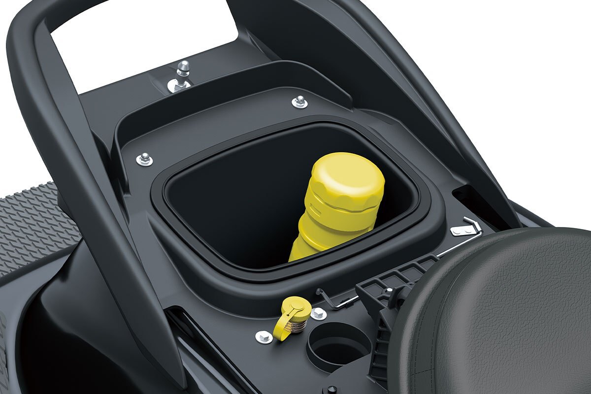 Using high-precision electronic control for engine management, Kawasaki models can achieve a high level of fuel efficiency. However, fuel consumption is greatly affected by throttle use, gear selection, and other elements under the rider's control. The Economical Riding Indicator is a function that indicates when current riding conditions are consuming a low amount of fuel. The system continuously monitors fuel consumption, regardless of vehicle speed, engine speed, throttle position and other riding conditions. When fuel consumption is low for a given speed (i.e. fuel efficiency is high), an "ECO" mark appears on the instrument panel's LCD screen. By riding so that the "ECO" mark remains on, fuel consumption can be reduced.While effective vehicle speed and engine speed may vary by model, paying attention to conditions that cause the "ECO" mark to appear can help riders improve their fuel efficiency – a handy way to increase cruising range. Further, keeping fuel consumption low also helps minimize negative impact on the environment.