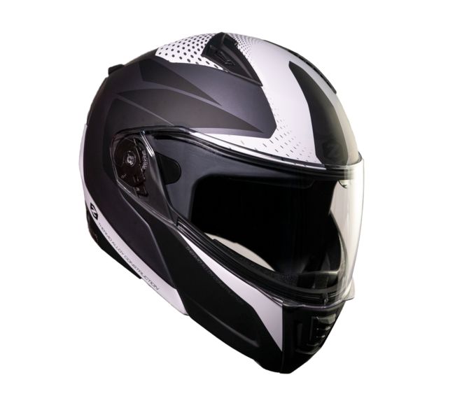 Lightweight, two shell sizes and two EPS for more comfort and better fit\n Large eyeport for improved visibility\n Integrated inner sun shield SVS (Solar Visor System)\n Injected visor, anti-scratch exterior, anti-fog inside\n Easy secure/release adjustable chin strap, micro metric buckle\n Removable and adjustable, washable interior\n Optimal venting thru intake and exhaust vents channeled thru the EPS\n EPS ear pockets for comfort, communication ready\n Flip-up jaw securely closes and opens easily\n Zox protective fleece helmets bag included\n Weight (approximate) 1600 g (3.5lbs)\n Meets or exceeds DOT FMVSS-218 and ECE 22.05.
