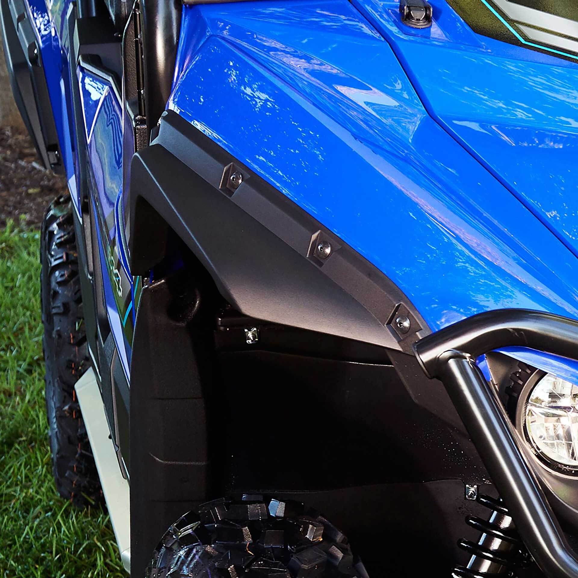 The overfenders seamlessly integrate with the Wolverine's styling while protecting the front of the unit from mud, water and debris